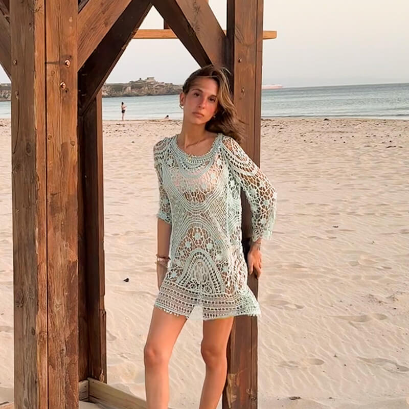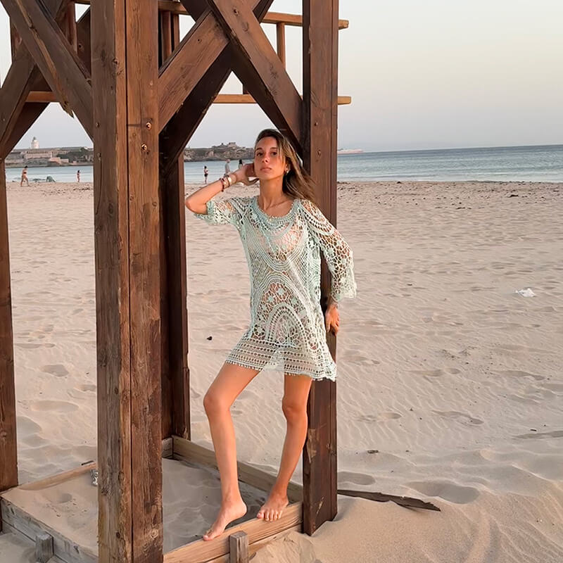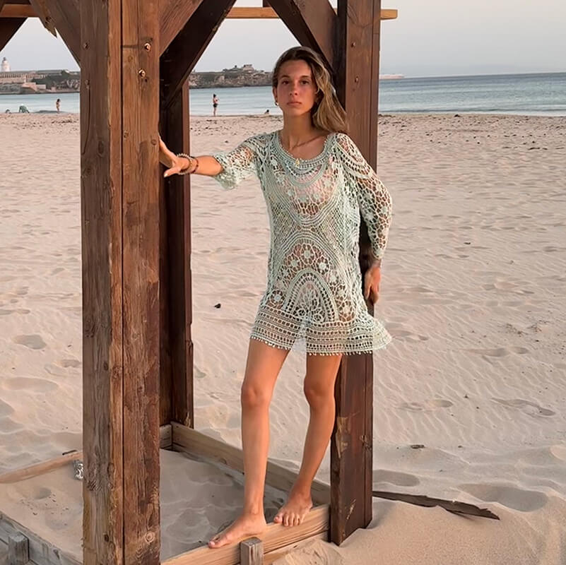 Un jersey de crochet calado es una opción perfecta para los días de verano en Tarifa, Cádiz. Su diseño ligero y transpirable lo hace ideal para llevar a la playa, ya que te proporciona un toque de estilo sin abrumarte con el calor. Además, puedes combinarlo fácilmente con un bikini o un top y unos shorts para un look informal y chic. También es versátil para usar en paseos por la ciudad o cenas al aire libre. ¡Disfruta del verano y de la brisa marina!