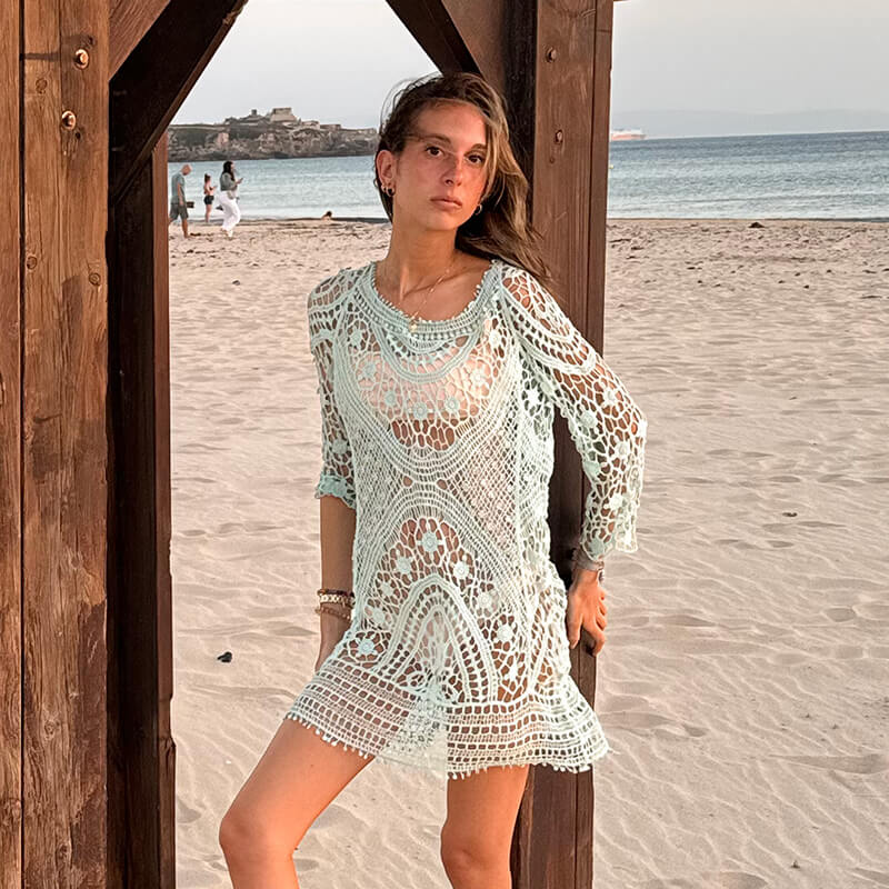 Con su diseño de manga larga y calado, es perfecto para darle un toque bohemio a tu outfit.