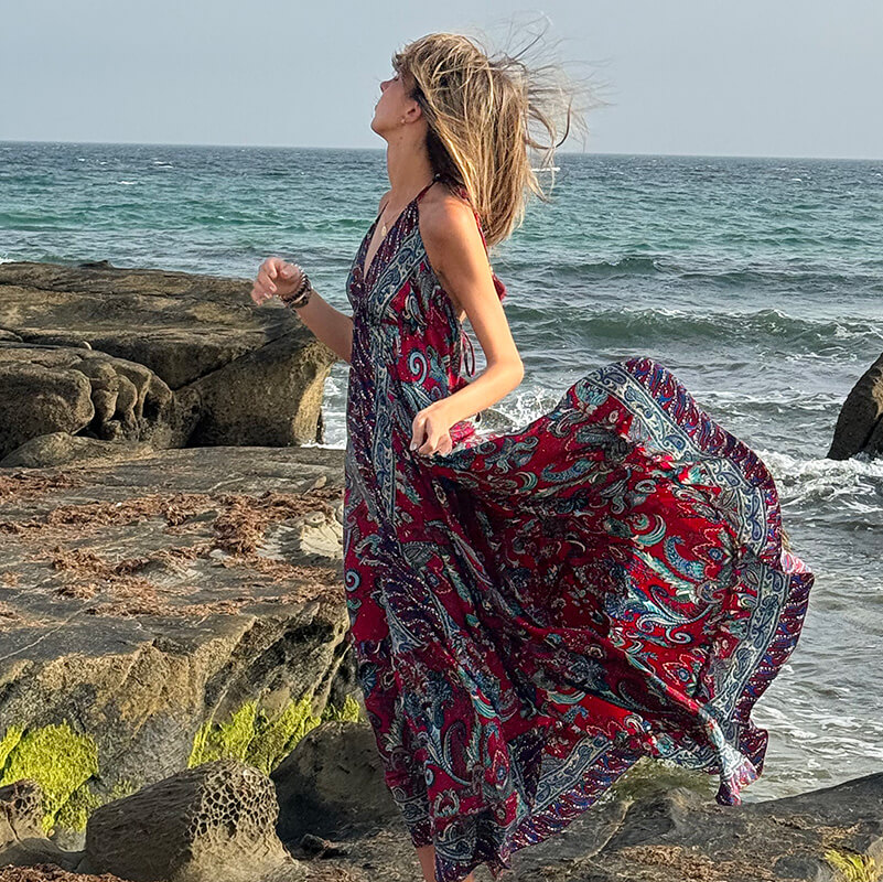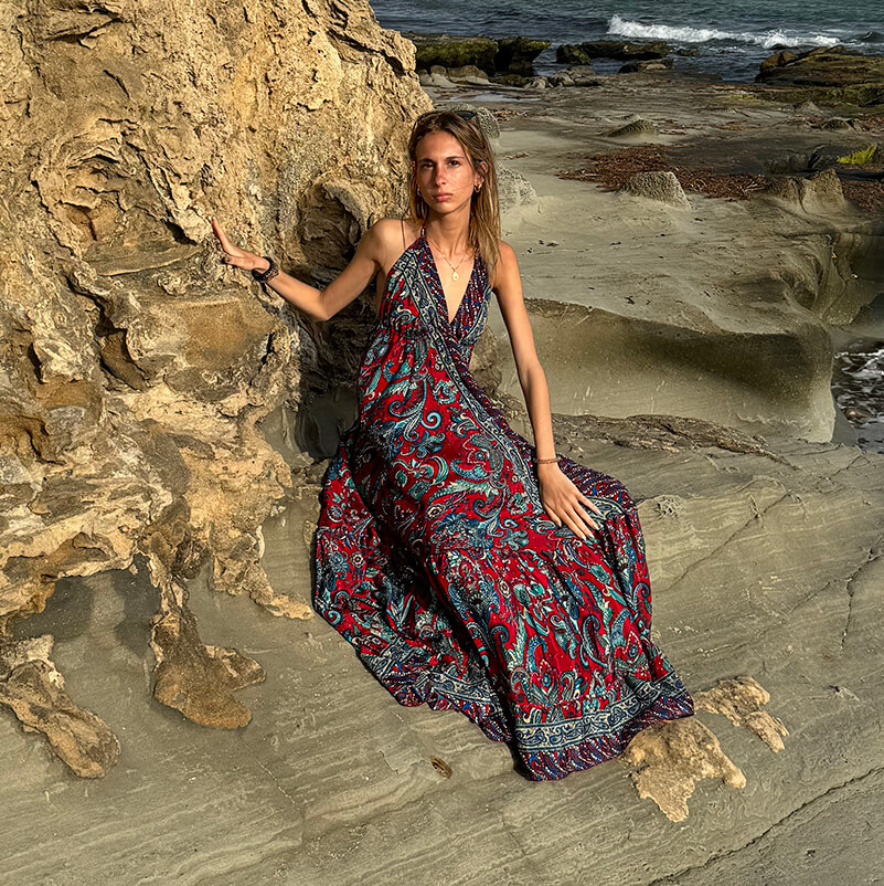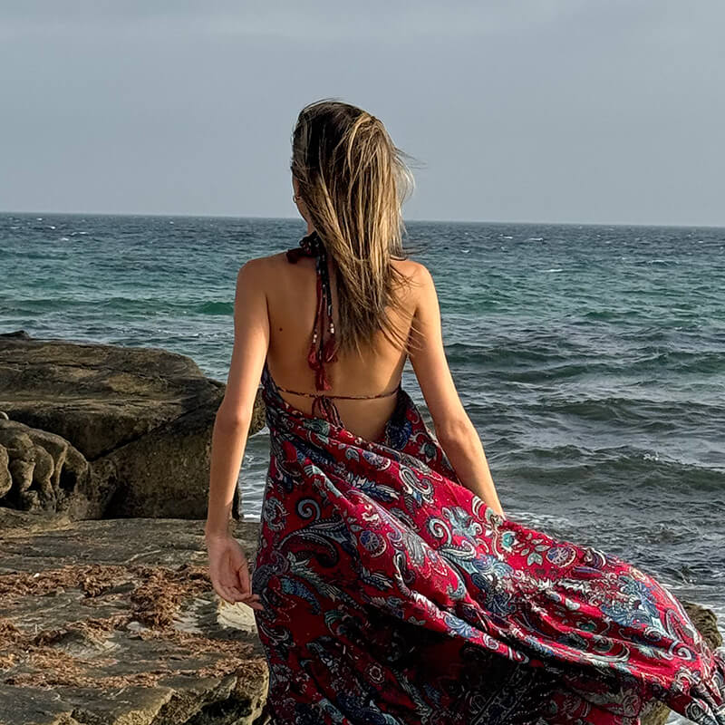 Descubre la elegancia y la frescura del verano con nuestro vestido largo de seda, perfecto para las mágicas tardes en la playa de Tarifa. Con un diseño que realza la figura y una espalda descubierta que añade un toque de sensualidad, este vestido es ideal para disfrutar de la brisa marina mientras paseas por la orilla. Su suave tejido de seda te mantendrá cómoda y fresca, mientras que los colores vibrantes evocan la belleza del atardecer. Ya sea para una cena al aire libre o un cóctel con amigos, este vestido será tu aliado perfecto para brillar en cada ocasión. ¡Déjate llevar por la magia de Tarifa y siéntete radiante!